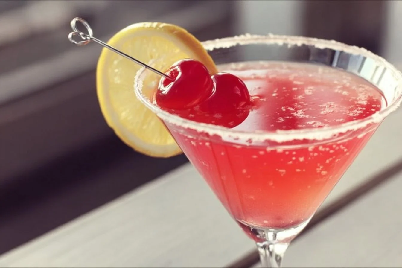 - Ingredients: 2 oz vodka, 1 oz fresh lemon juice, 1 oz simple syrup, 1 oz cherry juice, 1/2 oz triple sec, ice, sugar for rimming.