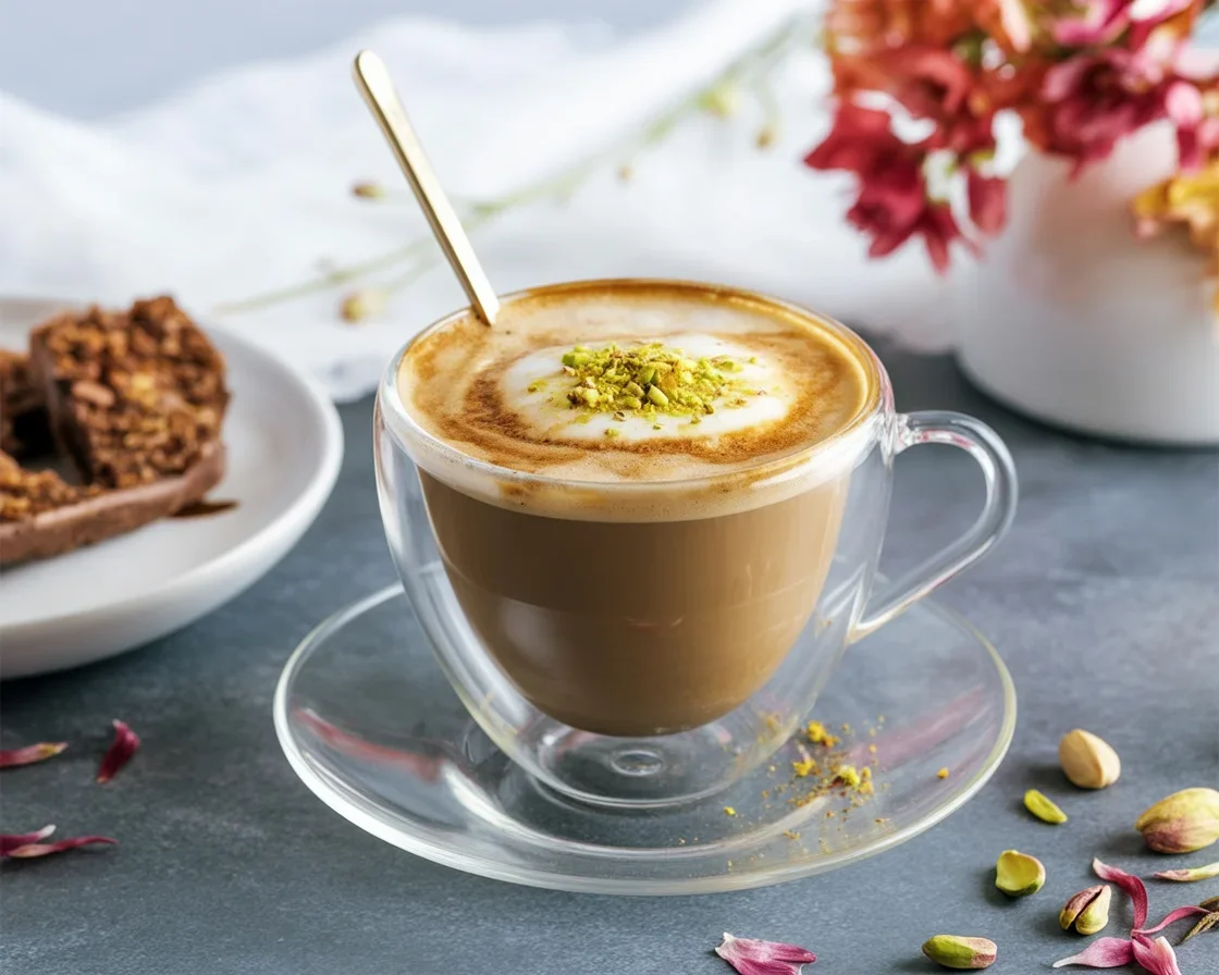 Here’s the scoop. A pistachio latte is pretty much your classic hot milky coffee, but with the mind-blowing magic of pistachios mixed in. It’s creamy, ever-so-nutty, and the color? Let’s just say it’ll make your Insta look five-star.