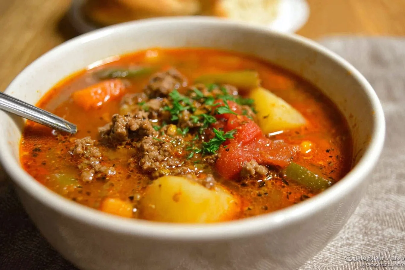 Easy Hamburger Soup is a warm and comforting dish that brings together the hearty flavors of beef, vegetables, and spices. It’s perfect for busy weeknights when you want something tasty yet simple to prepare. Not only is it filling and delicious, but it also makes great use of ingredients you might already have on hand. Plus, it’s a one-pot meal, which means less mess to clean up afterward!