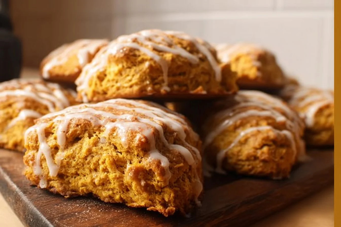 - For the drizzle, combine additional pumpkin, powdered sugar, cream, and spices, drizzle over glazed scones.