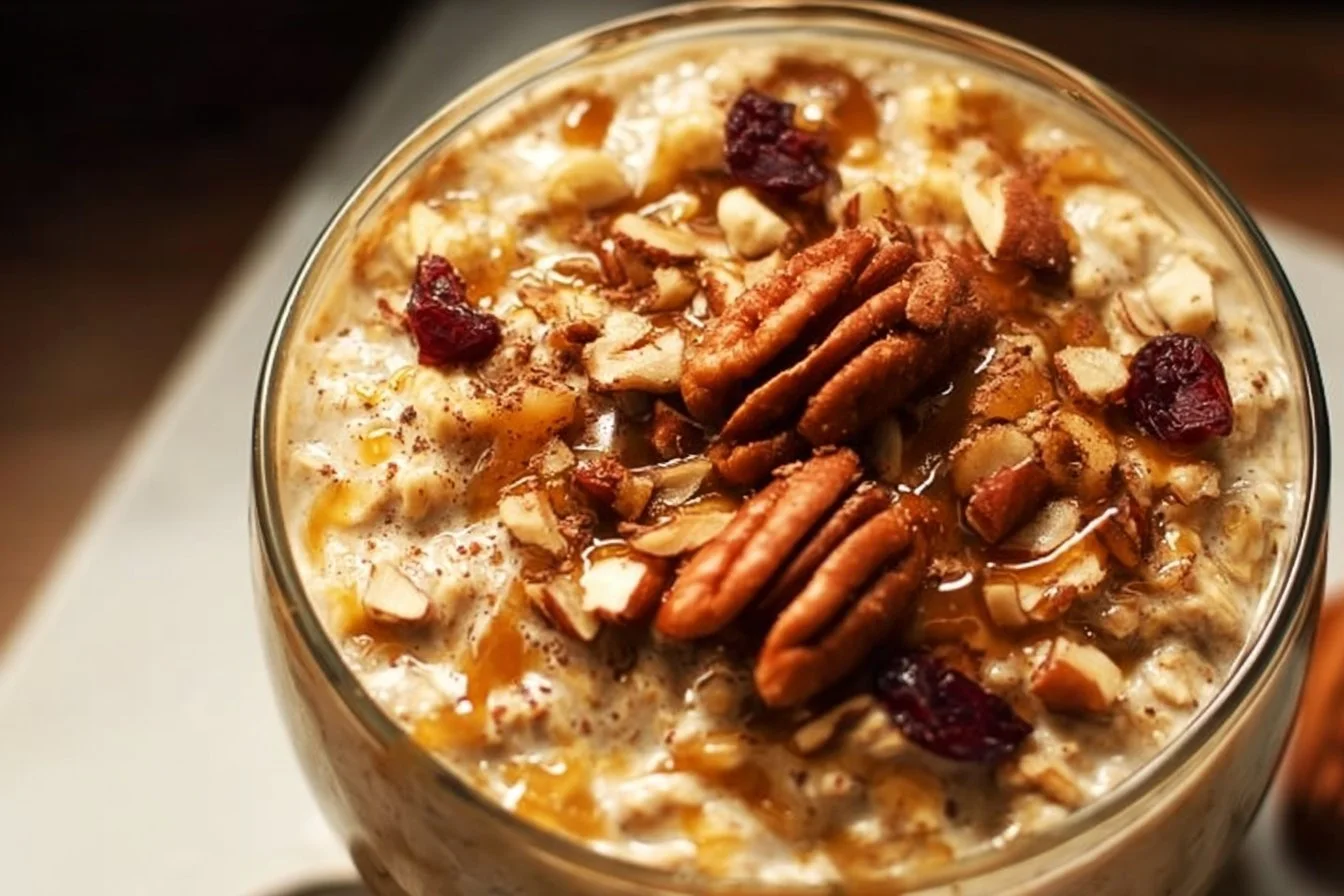 Before serving, sprinkle those gorgeous toasted pecans and walnuts on top. That crunch is the perfect finishing touch! Imagine; as you dig in, the creamy oats meet the nutty bits. Yum!