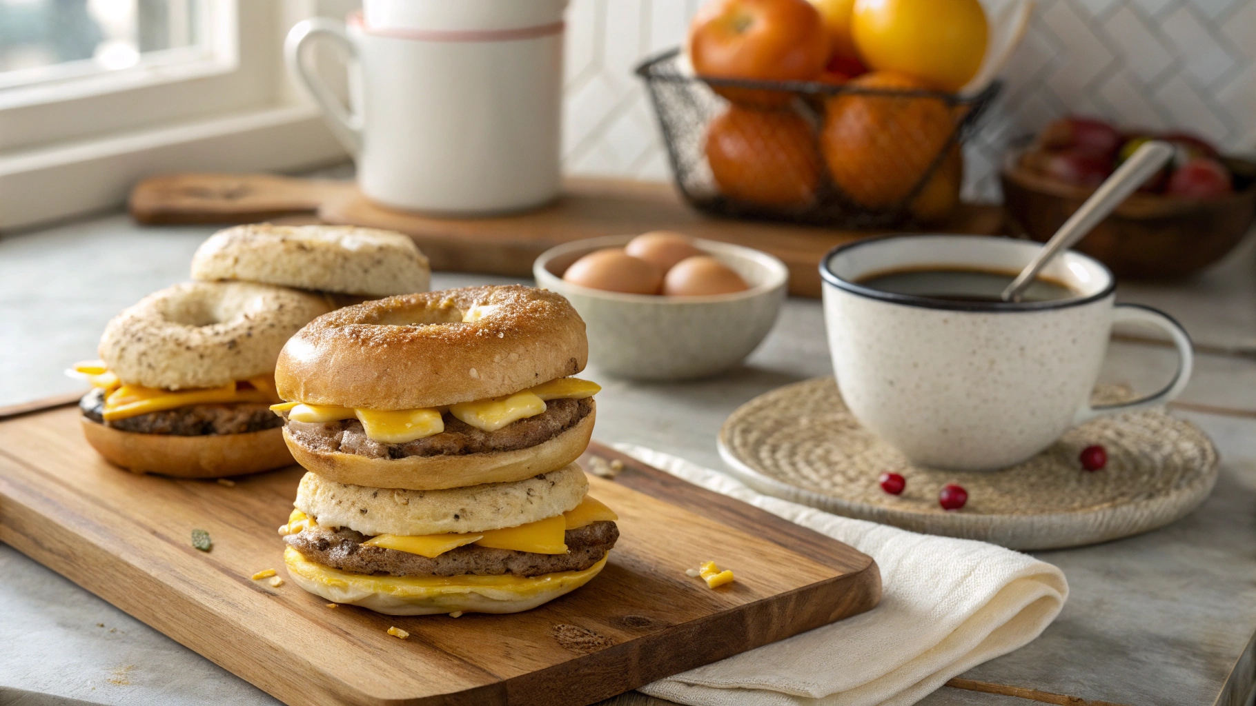 Get ready to whip up some delicious Sausage, Egg and Cheese Breakfast Bagels with these easy steps!