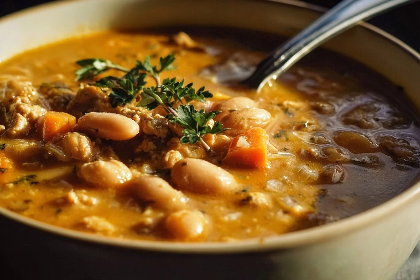 A cozy and nutritious chili made with savory turkey, creamy pumpkin, and wholesome white beans, perfect for chilly evenings.